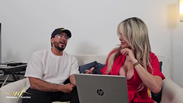 You went to relax by the pool but something much more tantalizing caught your eyes : the leggy curly blonde-haired MILF Julia North slipping out of her frilly top and lathering her body with lotion in just her white bikini, only to get caught once she starts to relax. She invites you over to confront you about spying on her, but she can't ignore that bulge in your pants, and now she's intrigued. She encourages you to watch up close, while she sprays more lotion on her body, caressing her big MILF ass with it, then facing you and taking out her all-natural perky MILF tits and rubbing lotion on them as well. After getting some lotion on her feet and lubing them up, she gives you a footjob, then a handjob, then slips off her panties to rub and finger fuck her shaved MILF pussy for you. By the end, she can't resist your big, hard cock any longer and bends forward to suck your cock until you fill her mouth and she swallows your load with a smile.